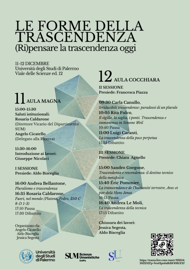 Intervention le 12 décembre à l’Università degli Studi di Palermo (Italie) à l’invitation d’Aldo Bisceglia.